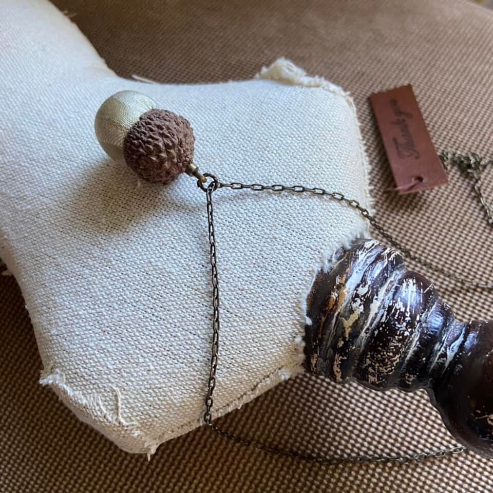 ペンダントトップは幸運のシンボルでもある「木の実の種子」がお守りとして入っています。ちょこんと"どんぐりの帽子"をつけているのも特徴です。